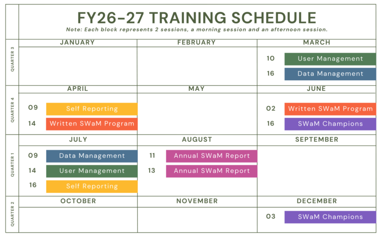 SWaM اخراجات کا ڈیش بورڈ ایک ایسا آلہ ہے جو ایجنسیوں کو اس بات کی تصدیق کرنے میں مدد کرتا ہے کہ وہ اپنے SWaM اخراجات کے اہداف کو پورا کرنے کے سلسلے میں کہاں ہیں۔